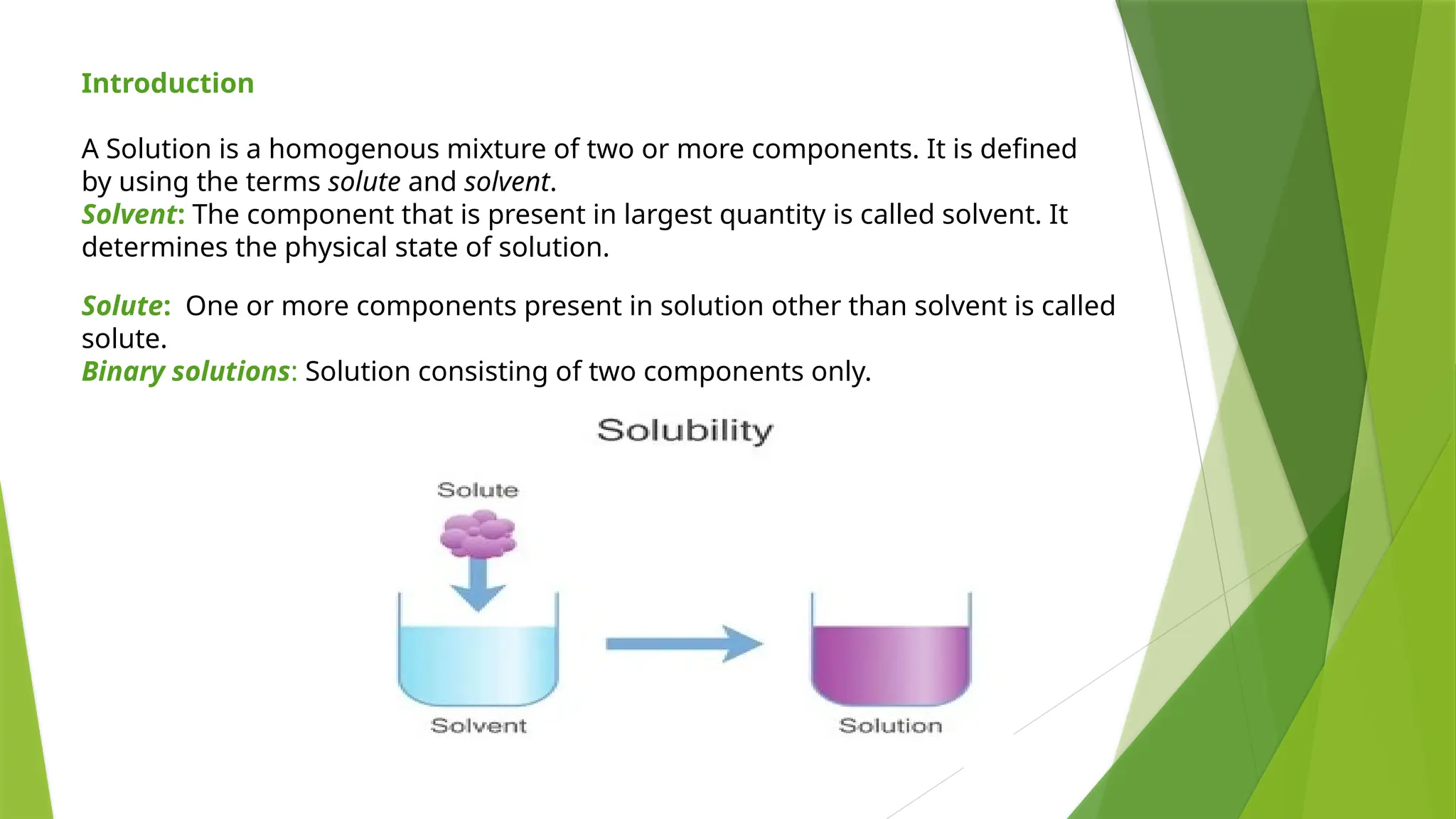 This document provides an overview of solutions, focusing on binary liquid solutions and their classifications. It discusses the factors affecting solubility, methods of expressing concentration, Raoult's law, Henry's law, and concepts related to osmotic pressure. Additionally, it elaborates on ideal and non-ideal solutions and important characteristics like boiling point elevation and osmotic phenomena.