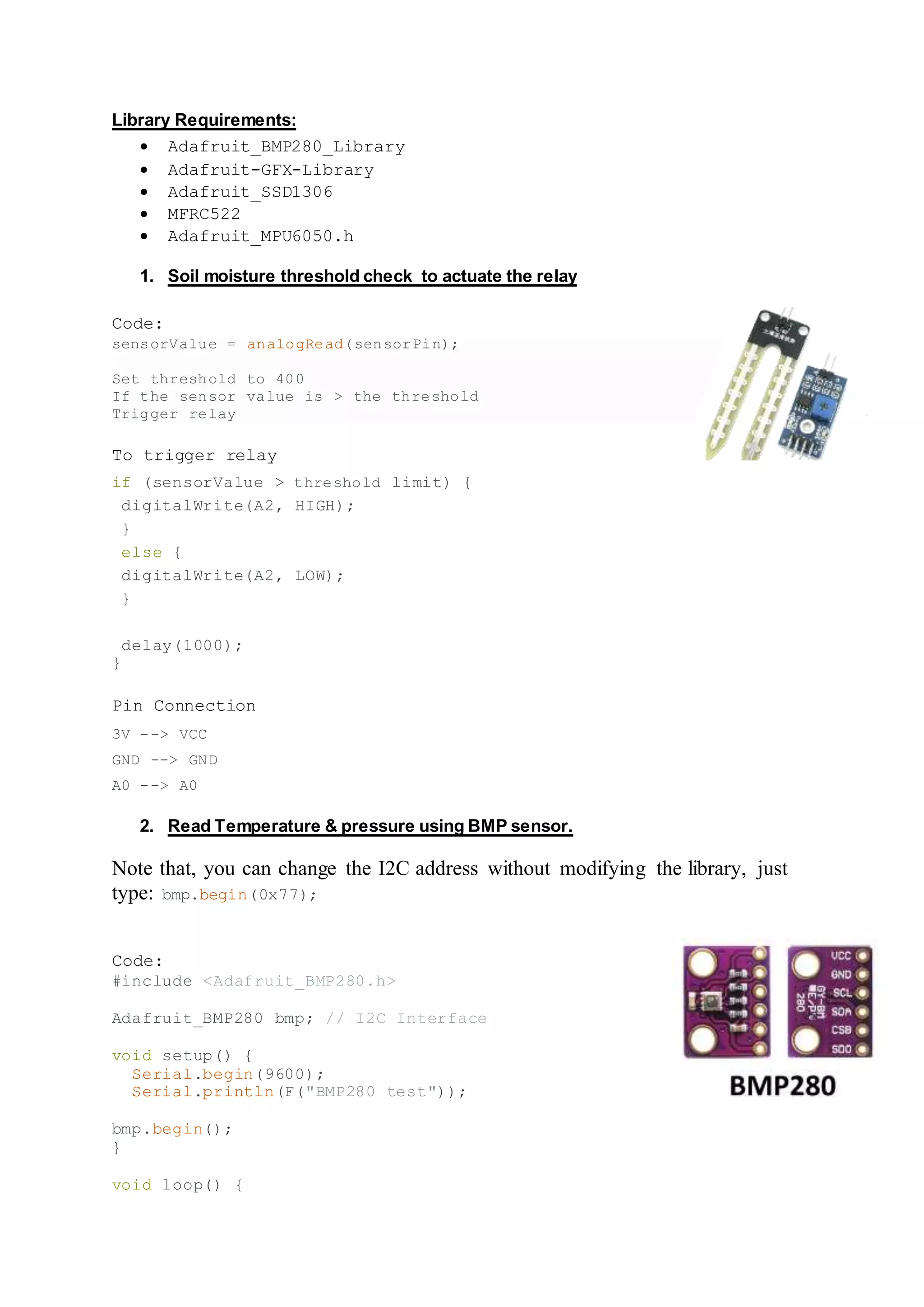 This document outlines the code and library requirements for 5 sensors on an Arduino board: