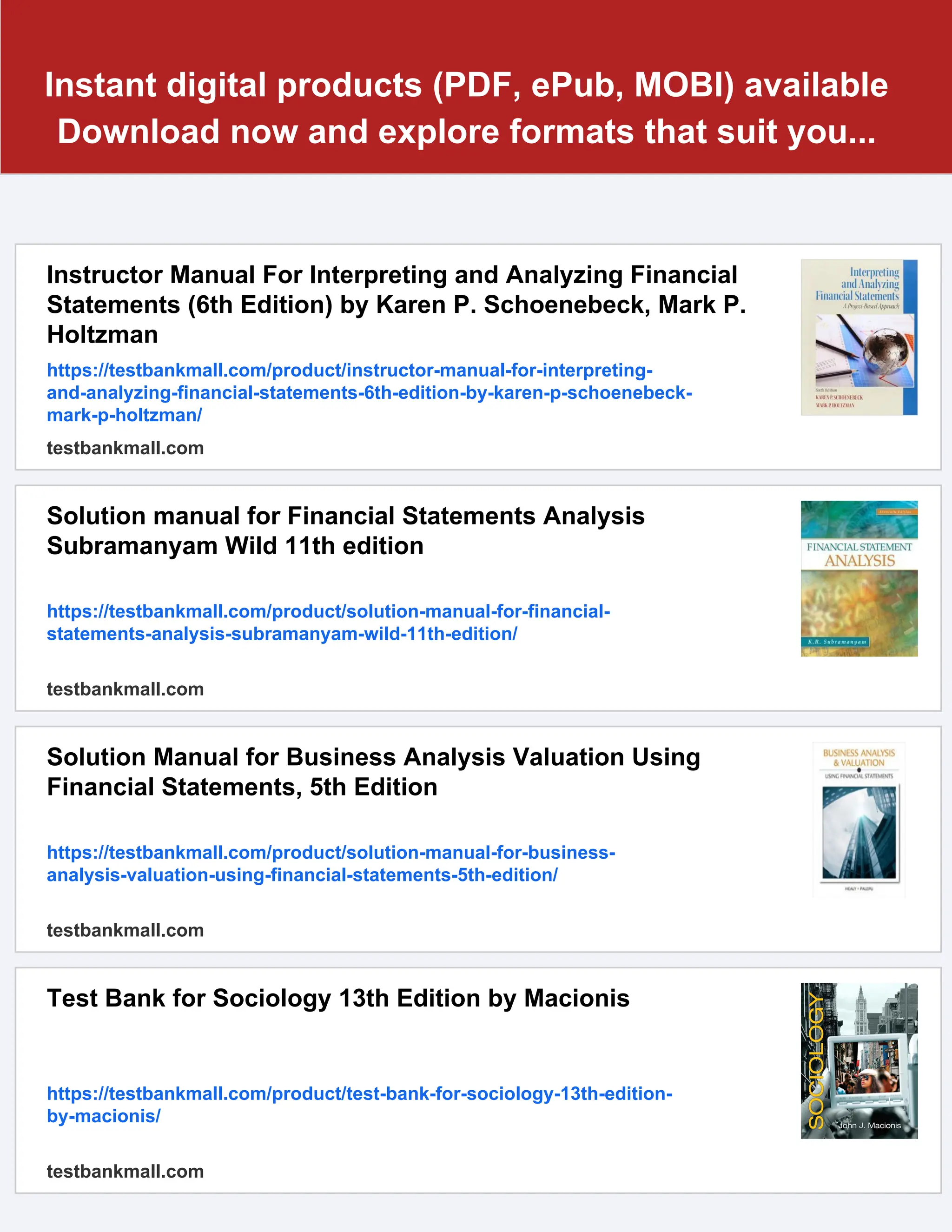 Solution Manual for Interpreting and Analyzing Financial Statements 6th Edition by Schoenebeck