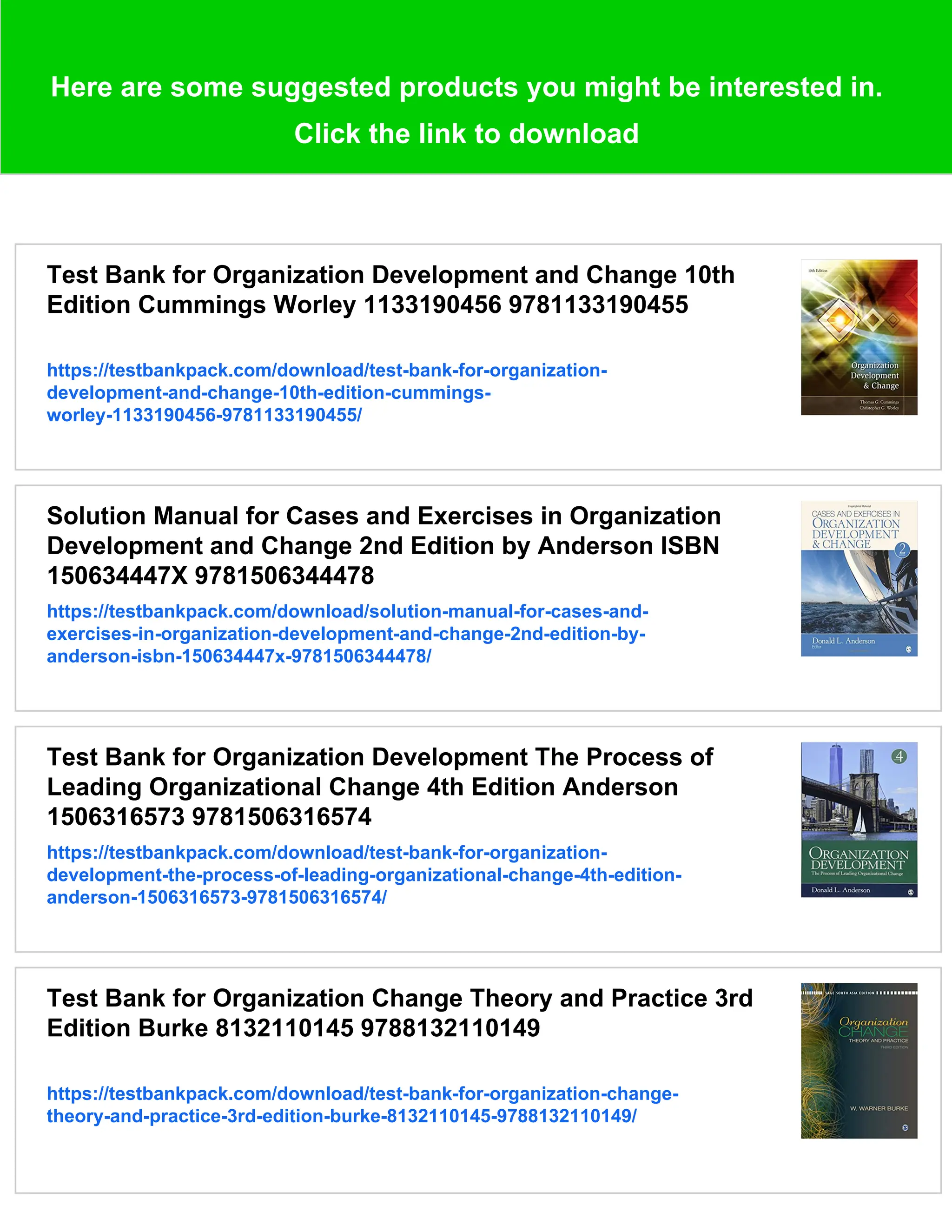Solution Manual for Organization Development and Change 10th Edition Cummings Worley 1133190456 9781133190455