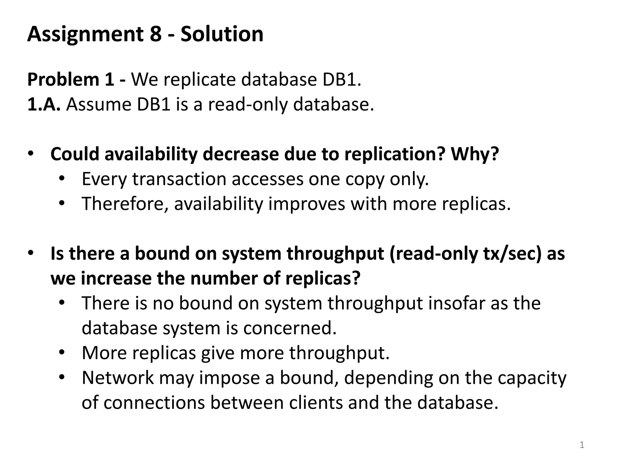 1. The document provides solutions to problems regarding database replication.