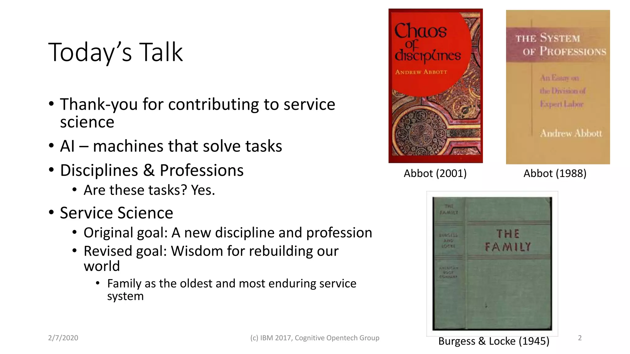 Jim Spohrer discusses the evolution of AI and its applications, as well as the relationship between disciplines and professions. The goal of service science was originally to create a new discipline and profession, but the revised goal is to develop wisdom for rebuilding the world. Spohrer also discusses how disciplines can be categorized into clusters such as the humanities, social sciences, natural sciences, and formal sciences.