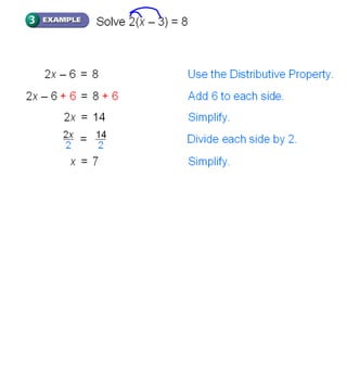 1. The document is an agenda for a math class on Wednesday October 7th. 2. The agenda includes correcting homework, more steps on equation solving, a possible quiz tomorrow, and working on a grid project for an art field trip. 3. Homework includes solving various math equations from pages 84 and 91 of the textbook.