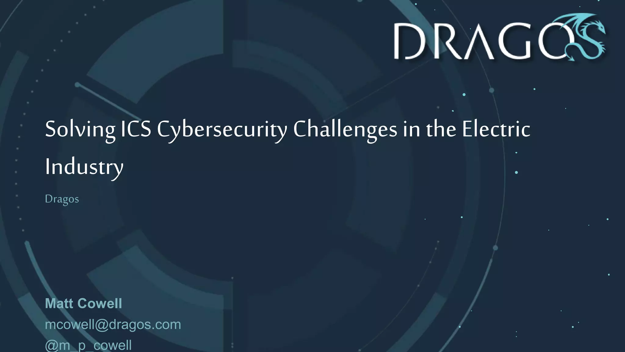 This document discusses how a mid-sized US electric utility implemented the Dragos cybersecurity platform to improve the visibility of its operational technology (OT) assets and threats, enhance compliance functions, and better support its limited OT security team. The Dragos solution included passive network monitoring sensors, asset characterization, and threat intelligence reporting. It helped the utility address compliance requirements, leverage Dragos' expertise through training and assistance, and improve its detection of OT threats through behavioral analytics and investigation playbooks. The solution demonstrated that combining technology with personnel support can effectively address common industrial control system security challenges faced by electric utilities.