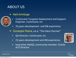 This document provides an overview and introduction to using Tungsten Replicator to solve replication problems. It discusses Tungsten Replicator concepts and components, how to plan, install, and configure Tungsten Replicator in different topologies such as master-slave, all-masters, and fan-in. It also covers common administration tasks like monitoring replication, managing the replication process, and using tools like trepctl and thl.