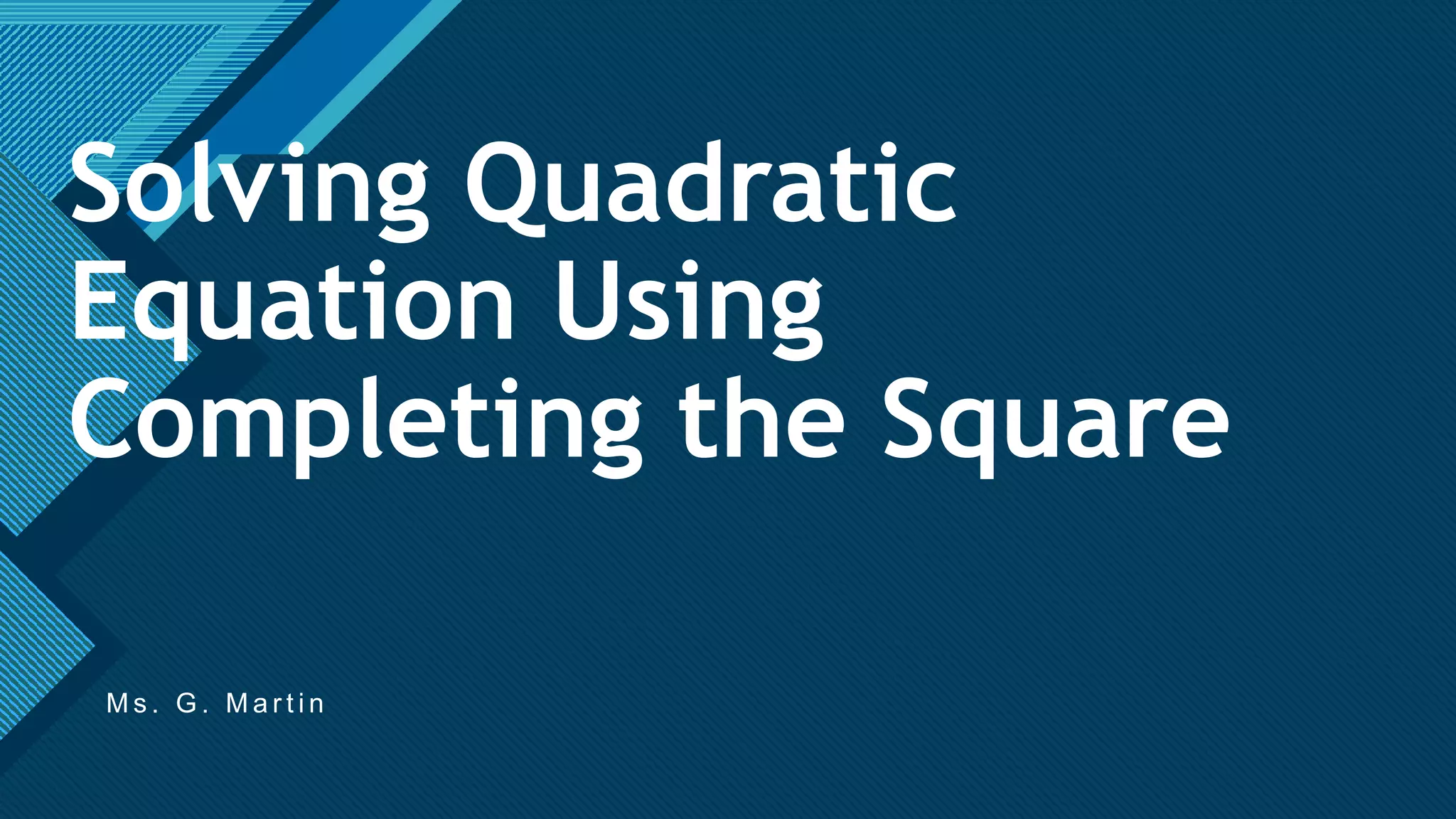 1. The document provides steps for solving quadratic equations using completing the square. It involves isolating terms with x, finding the square of half the coefficient of x, completing the square of the left side of the equation, applying the square root property, and solving for the roots.