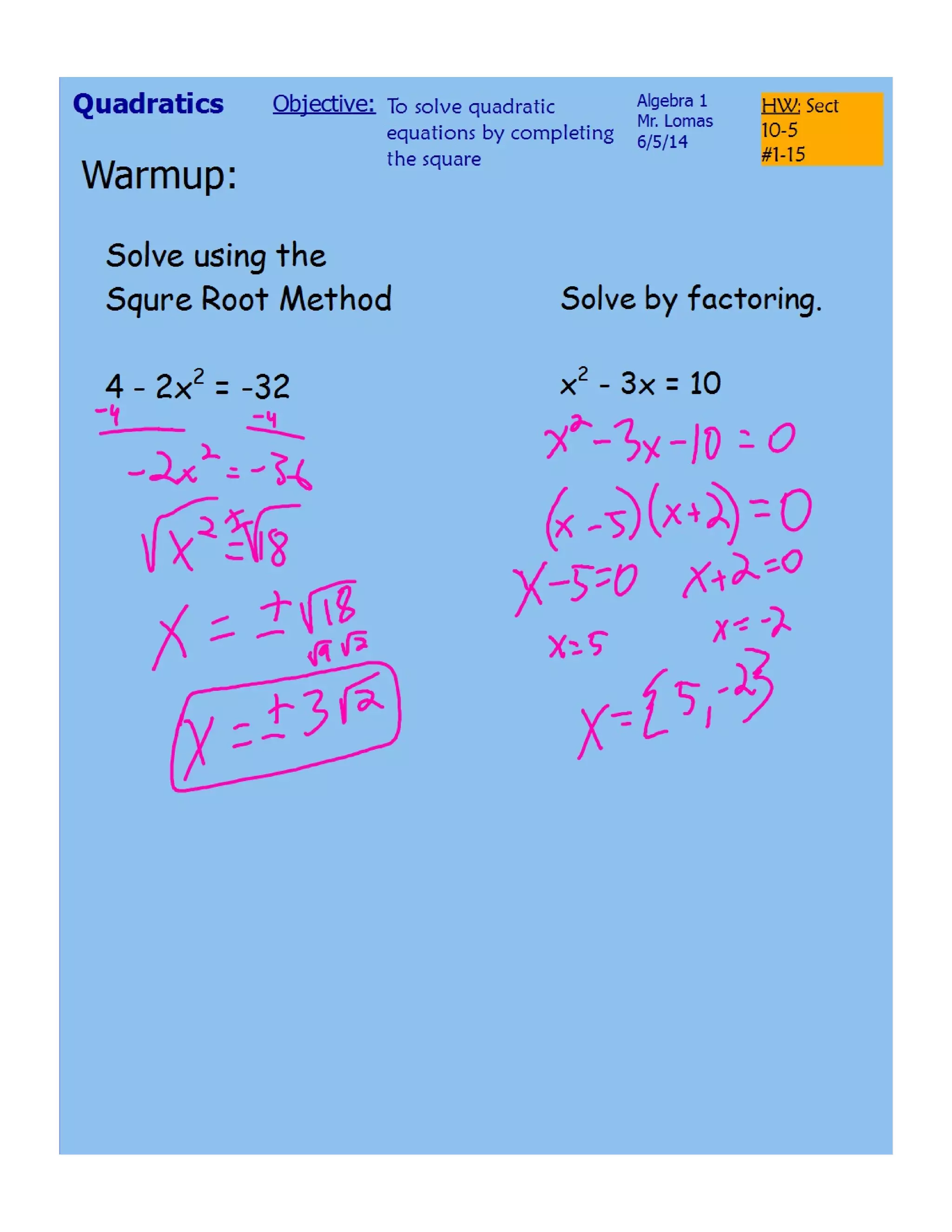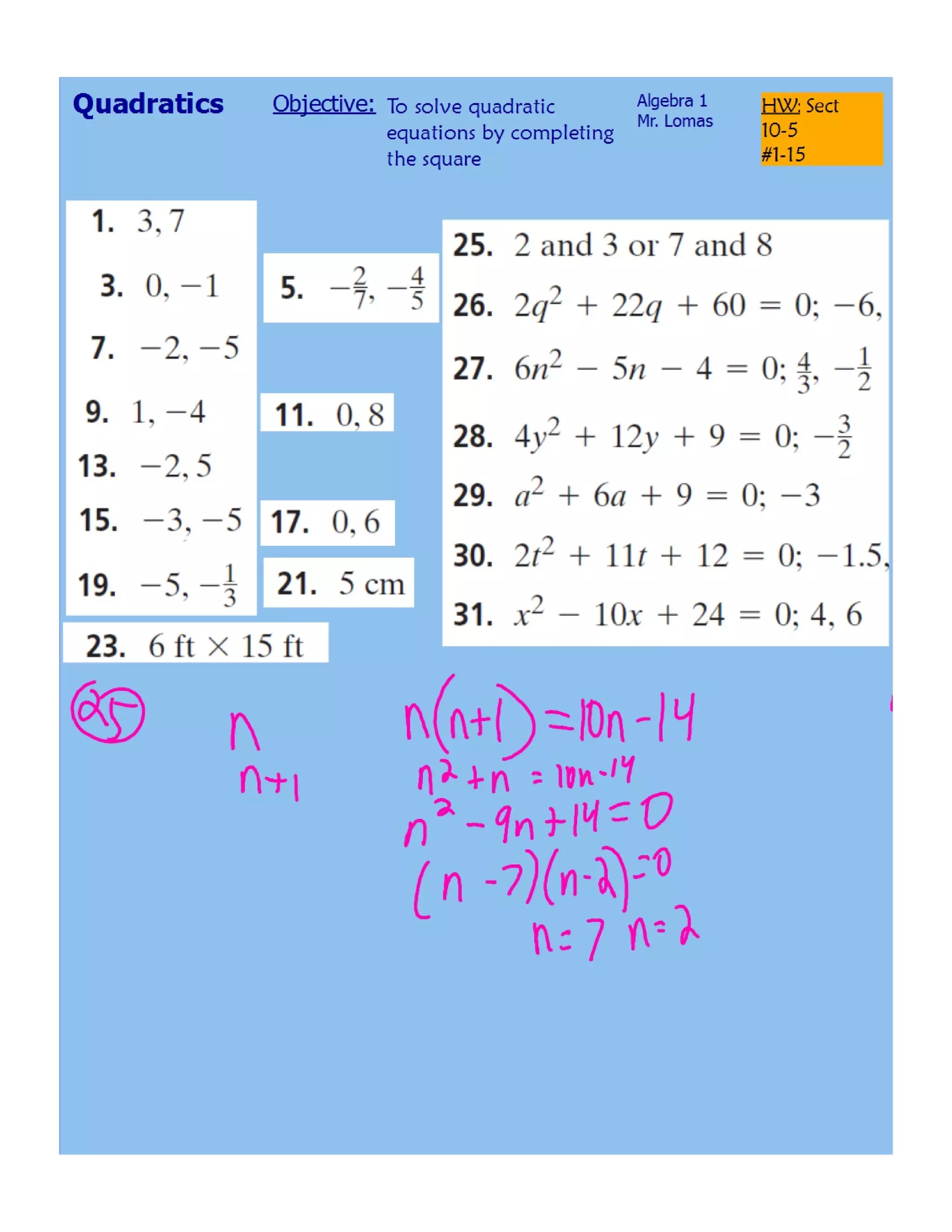 Solving quadratics by completing the square