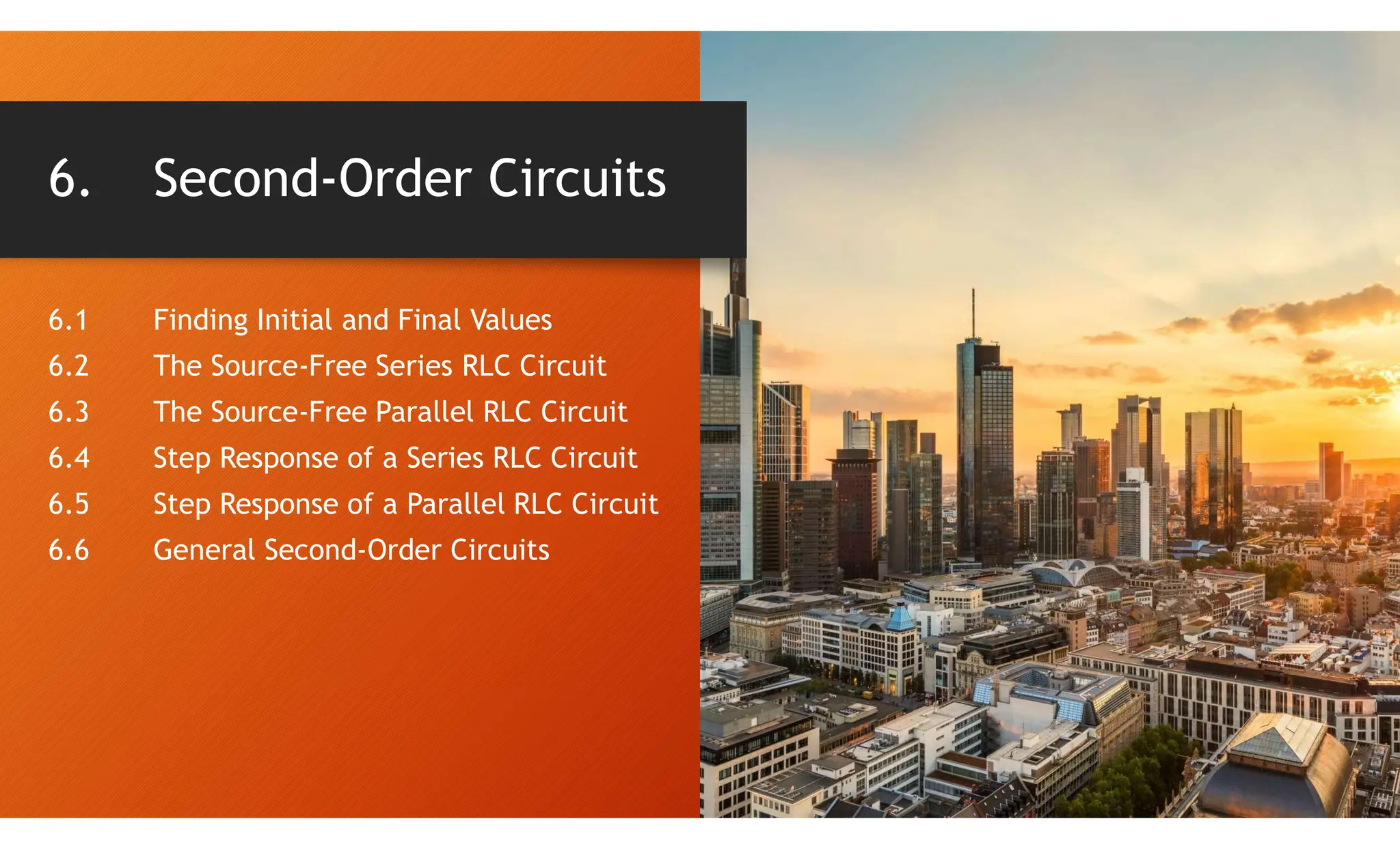 The document discusses second-order circuits, specifically source-free series and parallel RLC circuits, examining their characteristic equations and response types including overdamped, critically damped, and underdamped scenarios. It provides methods for finding initial and final values, and it presents practice problems for better understanding. The content elaborates on the transient and steady-state responses in terms of voltage and current variations in circuit conditions.