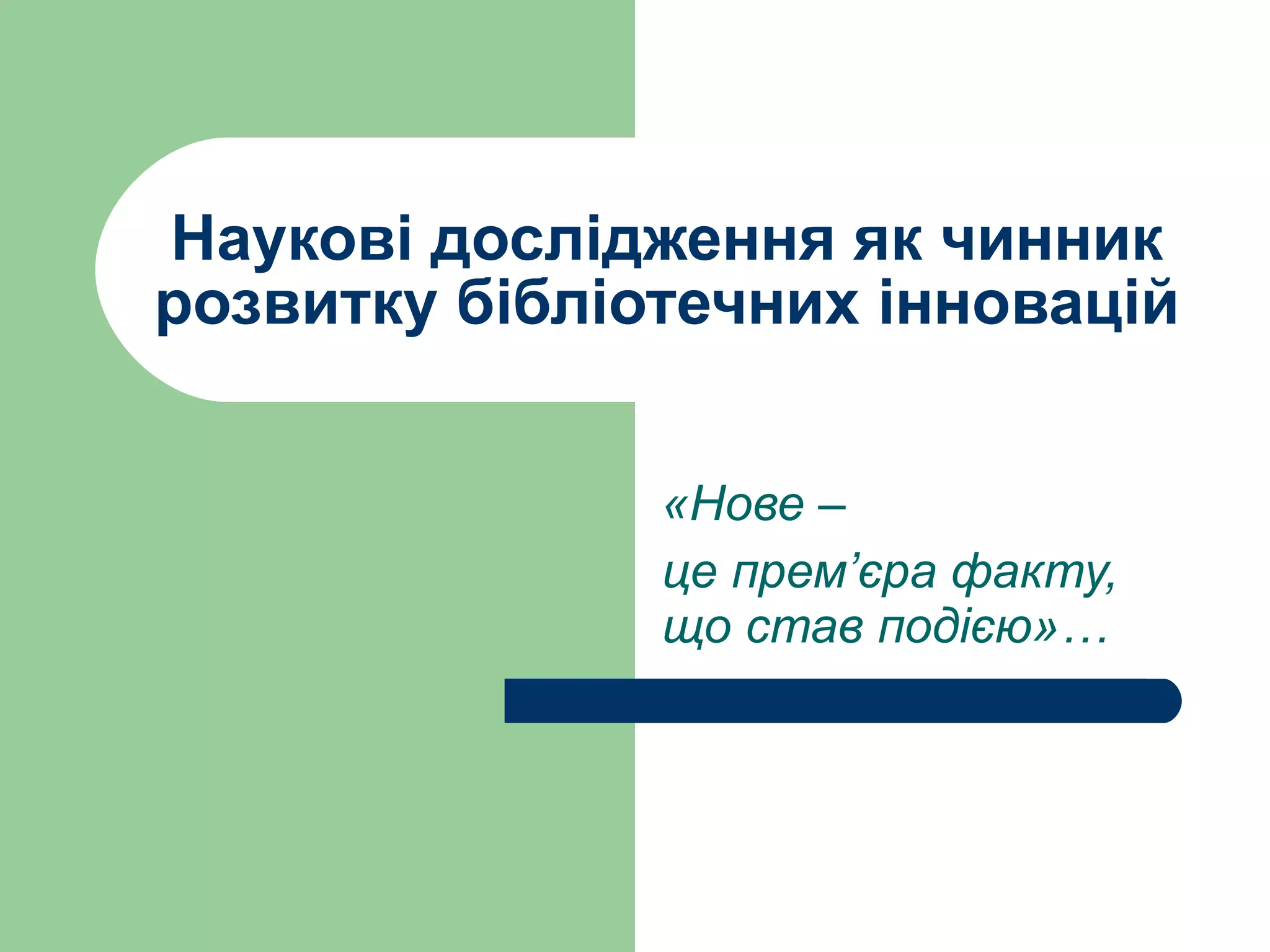 Наукові дослідження якчинник розвитку бібліотечних інновацій «Нове – це прем ’ єра факту, що став подією»…