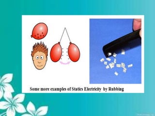 This document provides an overview of several natural phenomena including lightnings, electrical charges, earthquakes, and seismographs. It begins with an introduction to natural phenomena and then discusses lightnings, how objects become electrically charged through friction, and how opposite charges attract and like charges repel. The document also explains how to test for electric charge using an electroscope and how charge is transferred. It then covers earthquakes, what causes them, how they are measured on the Richter scale, and safety precautions. Finally, it briefly discusses seismographs and their use in detecting seismic waves generated by earthquakes.