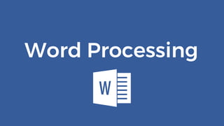 Word processing refers to creating, editing, and formatting documents using a computer and word processing software, with Microsoft Word serving as a key example. The document describes the various components of Microsoft Word, such as the ribbon, quick access toolbar, title bar, ruler, document pane, scroll bars, and status bar, detailing their functions and customization options. Overall, it highlights how these features facilitate word processing tasks effectively.