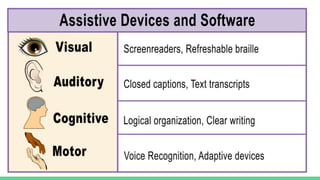 The document emphasizes the importance of making technology accessible to all individuals. It presents the idea that technology should be inclusive and cater to diverse needs. Overall, it advocates for a more equitable approach to technological advancements.
