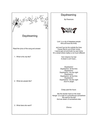 The singer describes living in a city where people are sleepless but unwilling to venture outside social norms. She dreams of building her own home on a street where dreams and reality are indistinguishable. She spends her time daydreaming to escape her current situation and imagine a better life elsewhere.