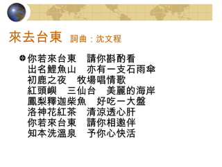 哎呀~大武山是美麗的媽媽 流呀流著啊滋潤我的甘泉 你使我的聲音更美,心裏更恬靜我們現在已經在一起,為了山谷裡的大合唱 我會走進這片山下,再也不走了 naruwan na iyanaya hoiya ho hai yan 哎呀~大武山是美麗的媽媽 流呀~流傳著古老的傳說 你使我的眼睛更亮,心裏更勇敢 我們現在已經都回來,為了山谷裡的大合唱 我會回到這片山下,再也不走了 我會走進這片山林,再也不走了 naruwan na iyanaya hoiya ho hai yan 哎呀~~太平洋也是美麗的媽媽