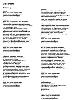 Ang dokumento ay naglalaman ng iba't ibang kanta na tumatalakay sa mga tema ng pag-ibig, alaala, at mga karanasan sa buhay ng kabataan. Ang mga liriko ay puno ng emosyon at nagpapahayag ng mga damdamin ng pangungulila, pagnanasa, at pag-asa sa hinaharap. Sa kabuuan, ang bawat awitin ay nagsasalaysay ng mga kwento ng pag-ibig at ang mga pagsubok na dala nito.
