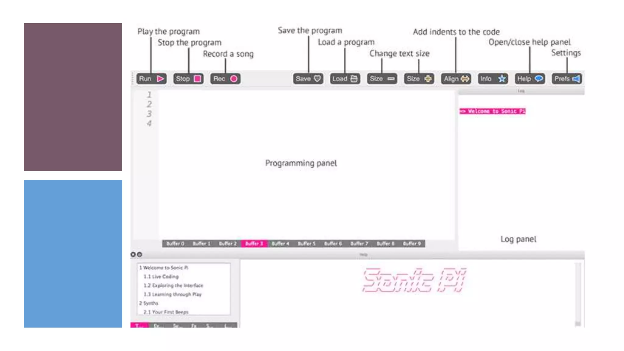 Sonic Pi is an open-source music creation software that allows users to generate and manipulate sound through coding in real-time, supporting various synthesis methods and platforms. Developed by Sam Aaron, it aims to make music creation more accessible, offering extensive documentation and a vibrant community. The software is utilized in educational settings and live performances, facilitating both novice and professional musicians in creating diverse musical genres.