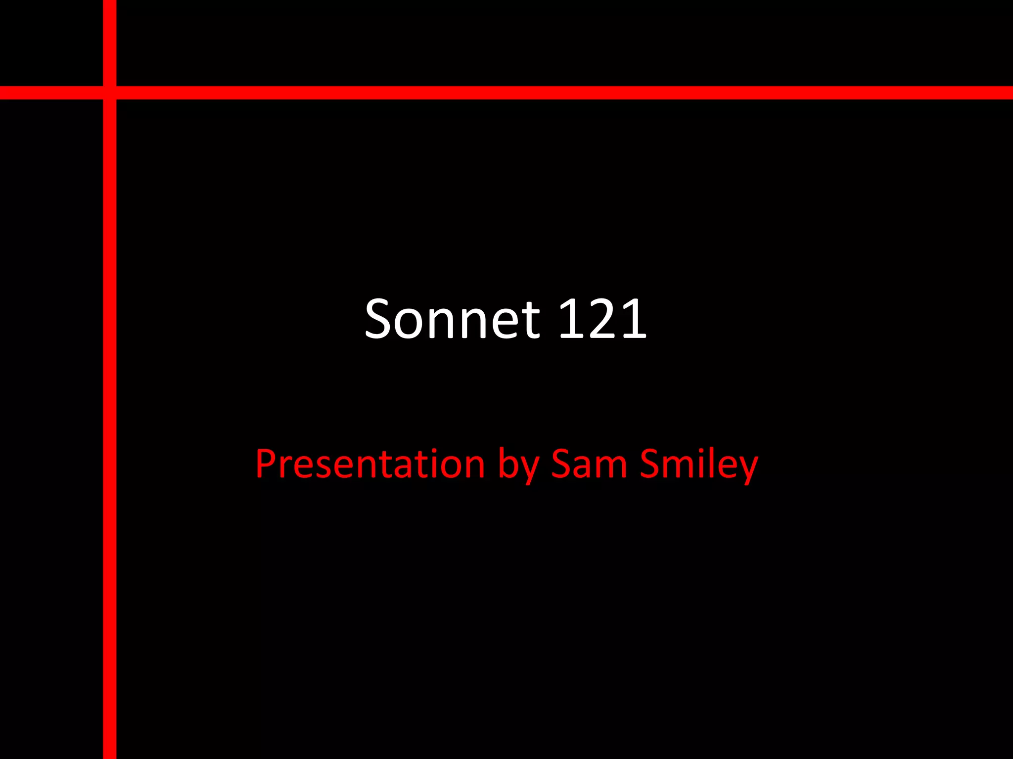 Sonnet 121 discusses the theme that it is better to be immoral than be unjustly perceived as such by others. The sonnet argues that one's true nature is defined by their own feelings rather than external judgments. It presents the idea that living according to others' views of what is proper rather than one's own inclinations can lead to a loss of pleasure and justice. The full theme is not understood until reading the entire sonnet.