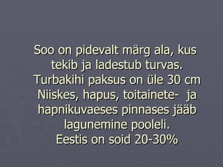 Soo on pidevaltmärg ala, kus tekib ja ladestub turvas. Turbakihi paksus on üle 30 cm Niiskes, hapus, toitainete- ja hapnikuvaeses pinnases jääb lagunemine pooleli. Eestis on soid 20-30%