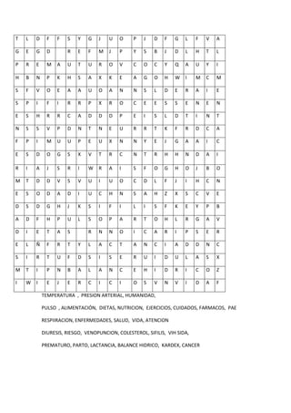 The document appears to be a random string of letters with no discernible meaning or topic. It includes various medical and health-related terms like temperature, blood pressure, nutrition, exercise, breathing, diseases, health, life, attention, risk, cholesterol, premature, birth, breastfeeding, and cancer, but no complete sentences or clear context.