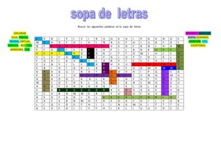 The document is a word search puzzle containing terms related to computers and the internet. Some of the terms to find include: EXPLORAR (explore), INTERNET, NAVEGAR (browse), GUIA (guide), PORTAL, WWW, DOMINIO (domain), PÁGINA (page), VIRTUAL, PORTATIL (laptop), RED (network), TICS, MONITOR, CPU, ESCRITORIO (desktop), WINDOWS, USB, and more. The terms are hidden amongst letters in a grid, which the user must search to find all the terms.