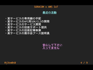 The document provides a series of AWS IoT commands for creating a thing, generating keys and certificates, creating a policy, and setting up a topic rule for message publishing to SNS. It includes script snippets for managing connections and sending data from a Raspberry Pi, as well as setting up a simulation environment. Additionally, it outlines how to integrate with AWS services like SNS and SQS.