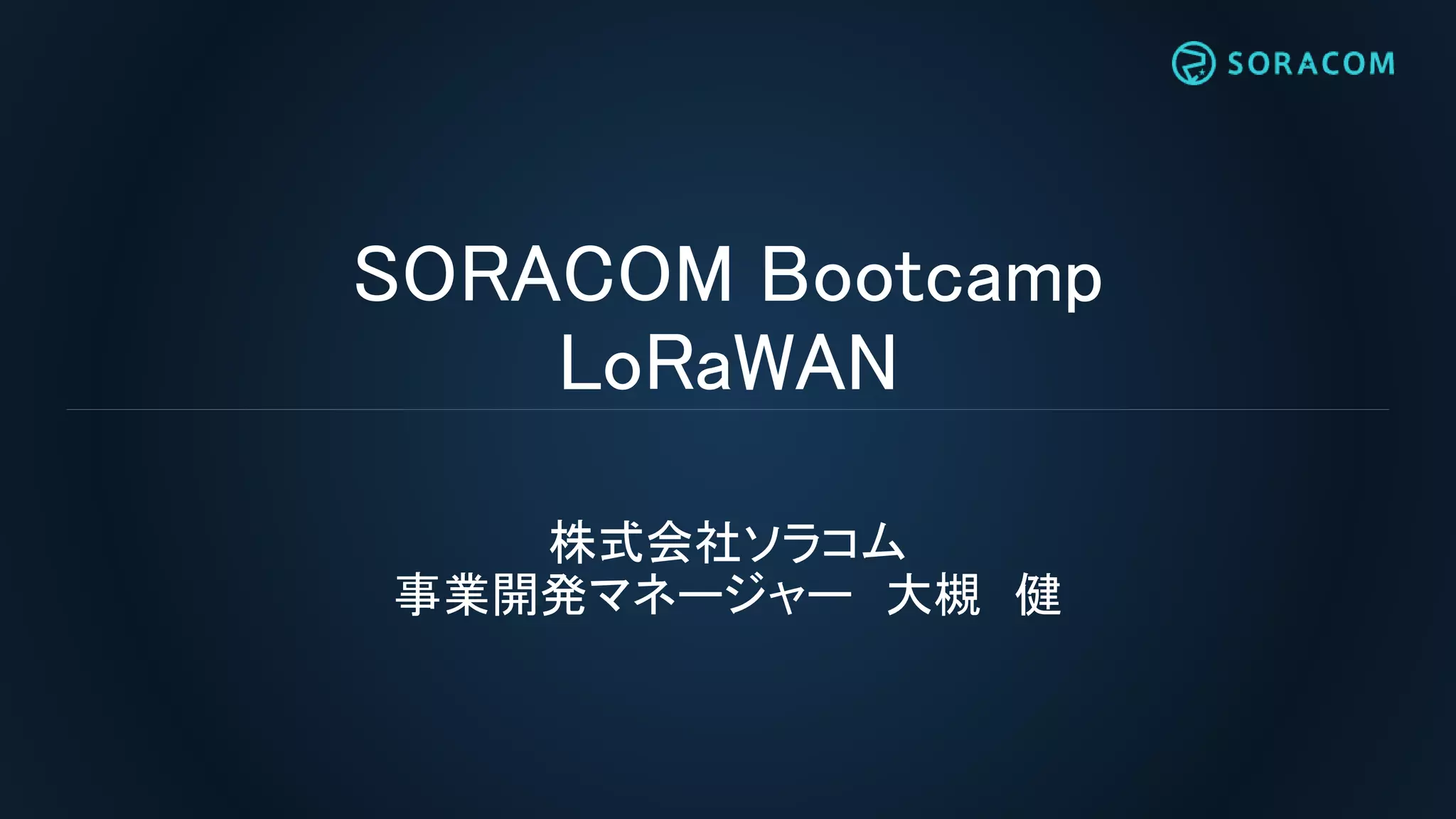 SORACOM Bootcamp Rec4 - LoRaWAN 動画はこちらをご覧ください:https://youtu.be/Aublxd7x4qk 株式会社ソラコム 事業開発マネージャー 大槻 健