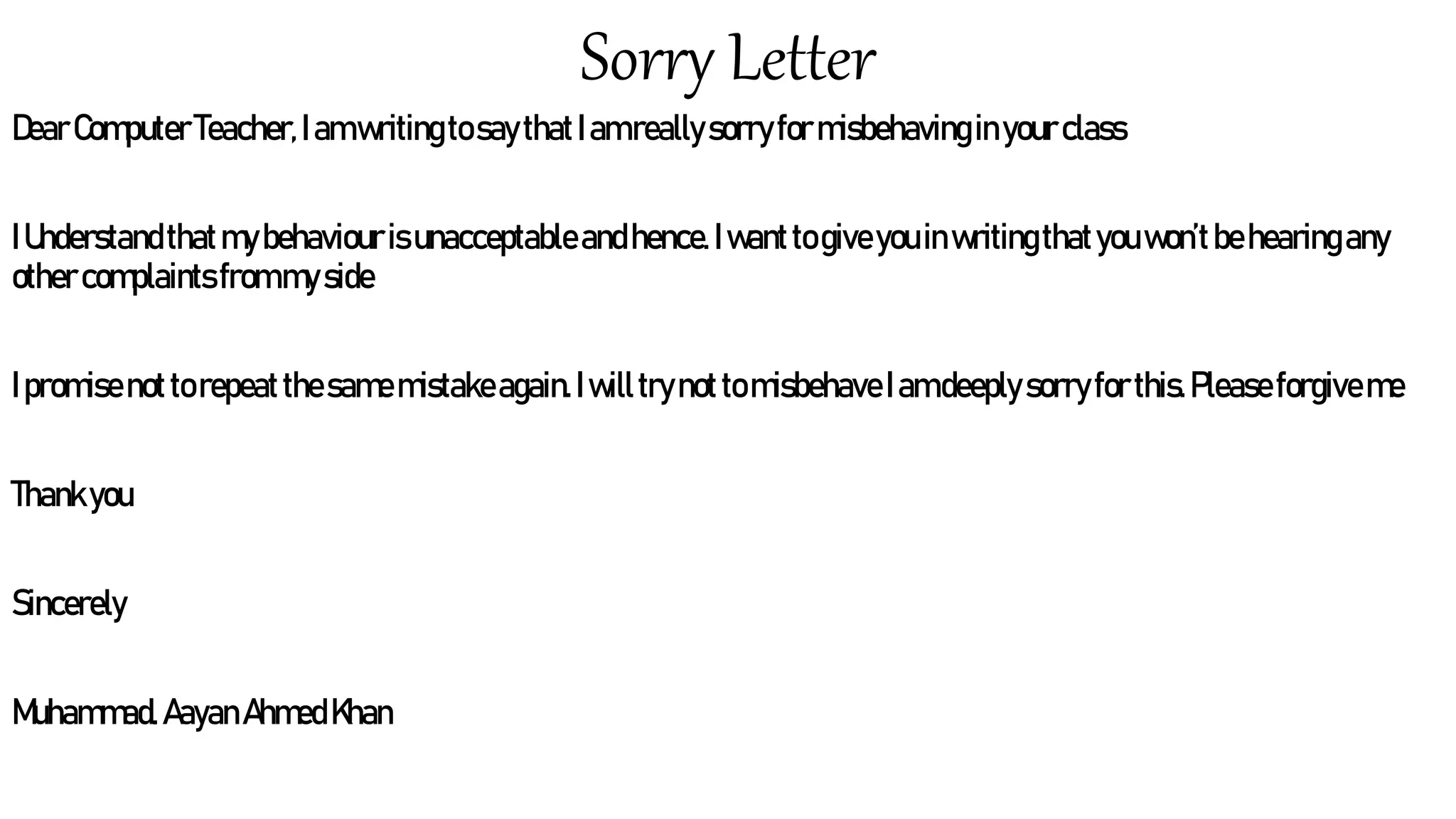 I am writing to apologize for misbehaving in your class. I understand my behavior was unacceptable and promise not to repeat the same mistake again. I will try not to misbehave and am deeply sorry for this incident.