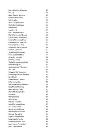 The document appears to be a list of names, likely individuals involved in a specific organization or event. It includes various names and surnames, but lacks context regarding their significance or relation to each other. The overall structure suggests a compilation rather than a traditional narrative document.