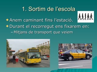 Fins la paradade Drassanes. Ens hem de fixar en: - Plànol metro. Diferents línies - Sistemes d’informació. - Normes de seguretat i d’ús (portes, seients,..).
