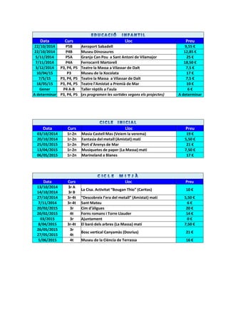 3/12/2014 P3, P4, P5 Teatre la Massa a Vilassar de Dalt 7,5 €