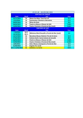 18/05/15 P3, P4, P5 Teatre l’Amistat a Premià de Mar 10 €