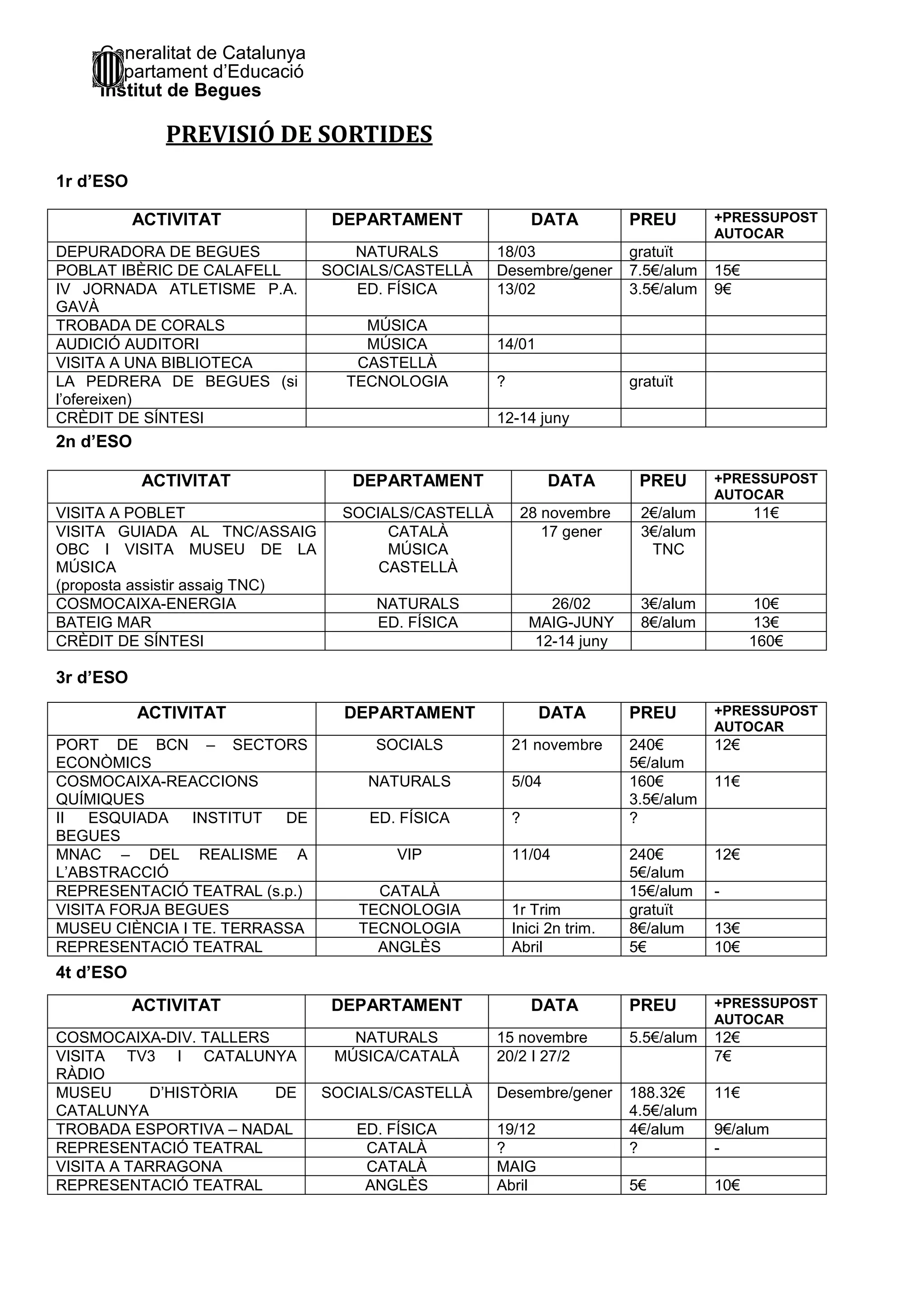 ACTIVITAT DEPARTAMENT DATA PREU +PRESSUPOST