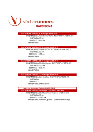 DATA/HORA SORTIDA Diumenge 17 de maig a les 9:30 h
