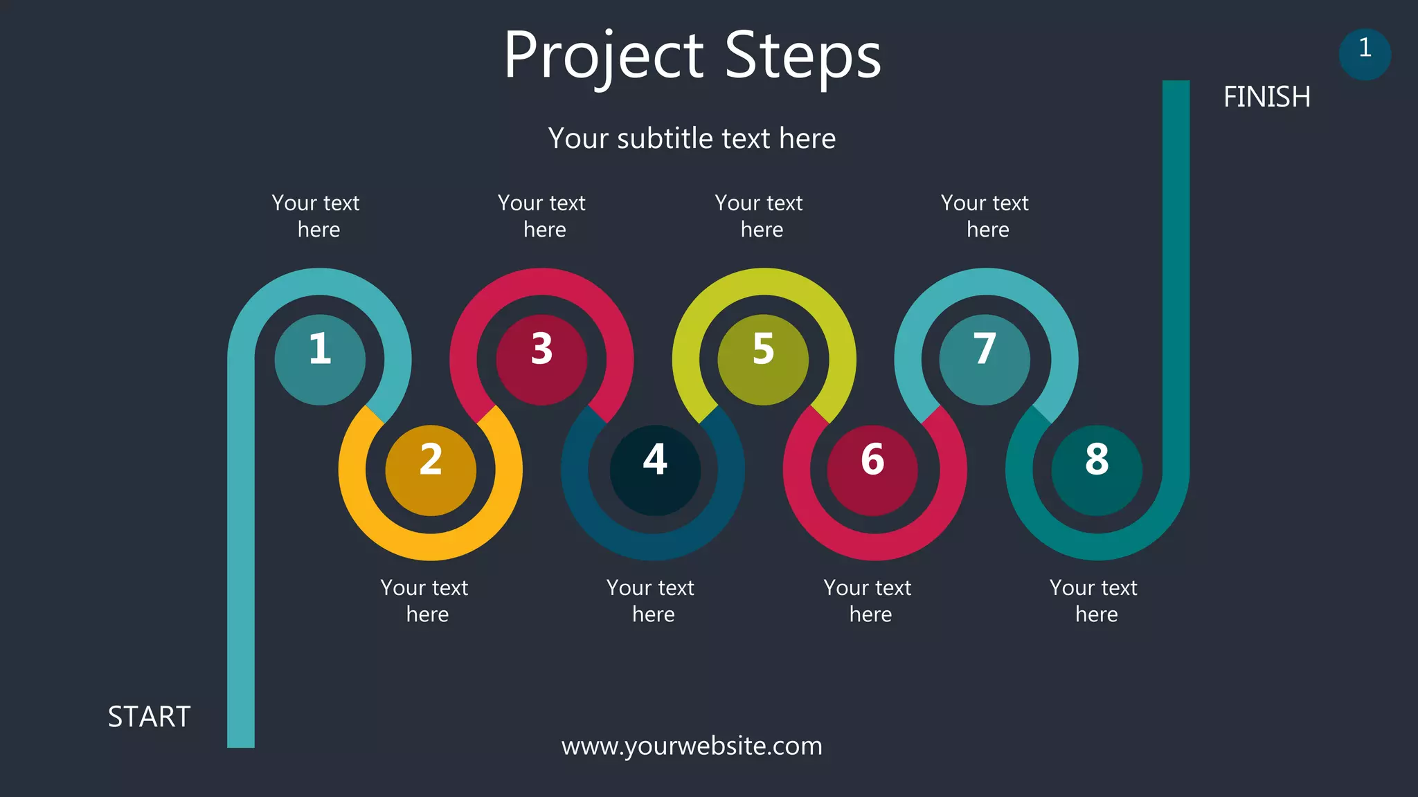 The document contains a collection of infographic templates covering various topics like project steps, checklists, milestones, timelines, goals, teamwork and more. Each template includes placeholder text and can be customized with a company's own information and branding.