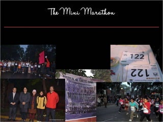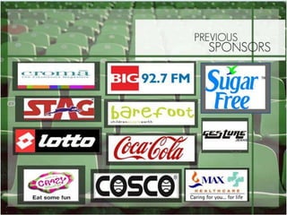 The document summarizes the sports activities organized by SRCC Sports Committee, including an intra college tournament for SRCC students across 5 sports. It also describes the Festival of Youth Sport (FOYS), a 4-day sports fest participated by 50 colleges from India. FOYS has elaborate opening and closing ceremonies with cultural performances and appearances from celebrities like Olympic medalists and politicians. The document also provides details about the organizing wings, corporate collaborations, past celebrity participants, and future plans for more workshops, sports, and engaging publications.