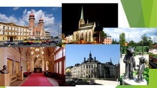 The document provides information about an Erasmus+ project called "Different but together" involving the Czech Republic. It summarizes the history of the Czech Republic, including that it was once the Kingdom of Bohemia but later part of other empires before becoming an independent democratic republic in 1993. It also describes Czech people as typically enjoying sports, having a reserved but polite and humorous personality, and being very hospitable. Additionally, it gives a brief overview of the city of Pilsen, Czech Republic, including its founding in 1295, current population of 165,000, and area of 125 square kilometers. Finally, it provides details about the High and Vocational School of Electrical Engineering Pilsen, including its founding,