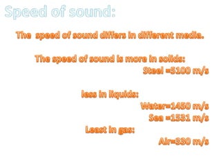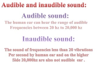 Vibration produces sound waves that propagate as longitudinal waves through a medium such as air. When an object vibrates, it causes disturbances in the surrounding air particles that move away as a sound wave. Sound waves travel through air and other media by particles colliding and vibrating in the direction of propagation. Sound is generated by various means including plucking, striking, rubbing and blowing objects, and is detected when the sound waves reach the ear.