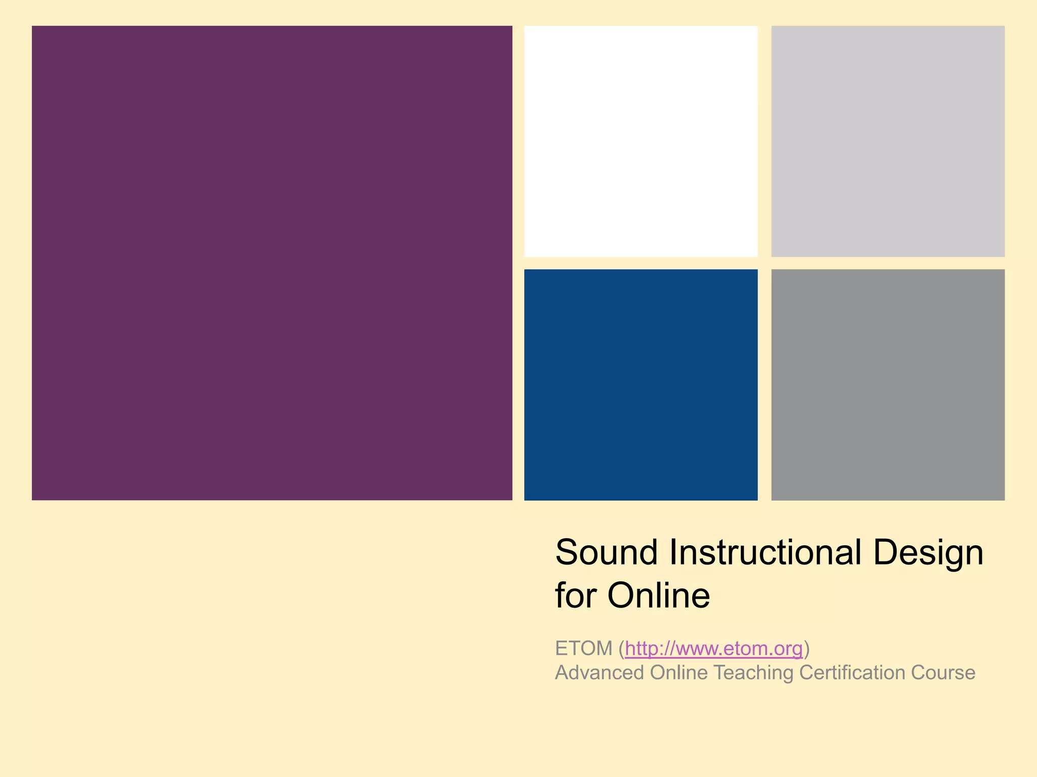 The document outlines sound instructional principles for online courses, including identifying module outcomes, planning engaging content and demonstrations that meet outcomes, providing opportunities for student interaction and practice of skills with feedback, and adequately assessing student achievement of intended outcomes. It also lists the tools used to create an online slidecast for a course, including SlideShare, Audacity, Colorzilla, and Blackboard Mashup.