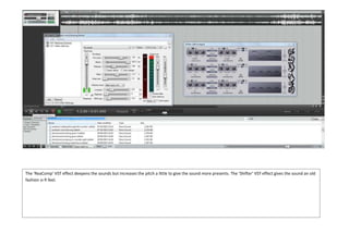 The 'ReaComp' VST effect deepens sounds while slightly increasing pitch to add presence. A 'Shifter' VST effect gives sounds an old-fashioned sci-fi feel. These effects can alter sounds in different ways.