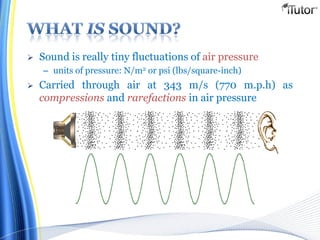 - Sound is caused by fluctuations in air pressure that propagate as waves. Frequency, wavelength, and speed are closely related characteristics of sound waves.