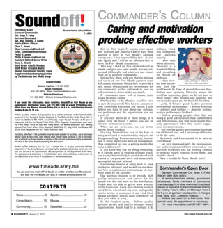 The document is the August 15, 2013 issue of the Fort Meade community newspaper Soundoff. Key details include: