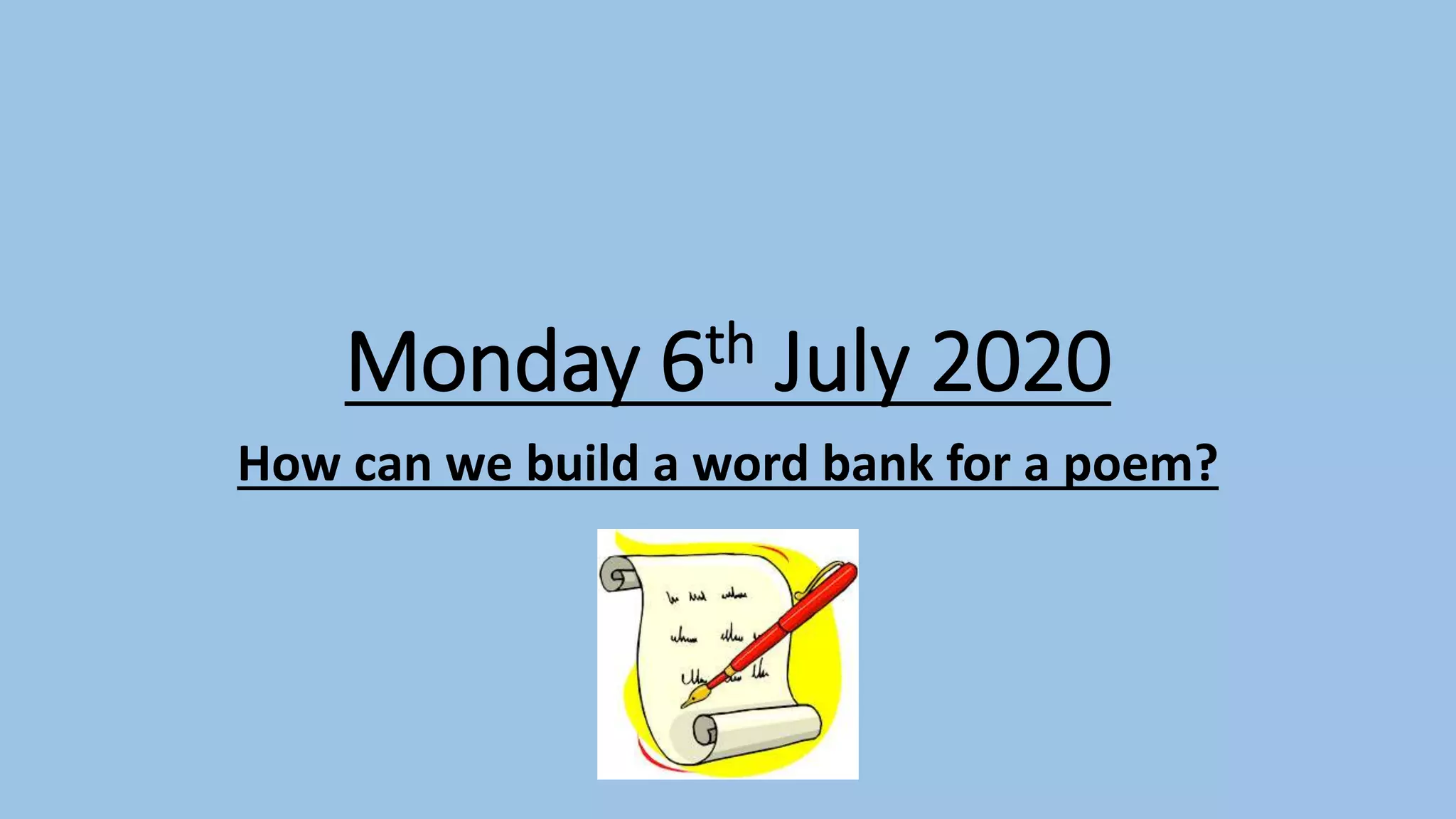 The document provides instructions for an activity where students listen to sounds around them and create a word bank of sounds. Students are asked to close their eyes for 1 minute and write down all the sounds they hear where they are sitting. They then go to different areas around their house and outdoors, and record the sounds they hear. Next, students imagine being back at school and list sounds they typically hear there. Their teacher provides a sample list of school sounds. Finally, students turn the sounds from their lists into descriptive phrases using techniques like similes, metaphors, personification and onomatopoeia. They then post their work on an online forum.