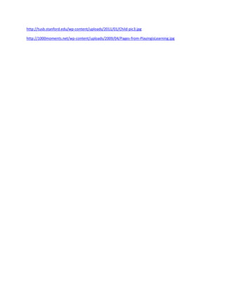 The document is a collection of image links related to early childhood education and child development. The images show children engaged in various learning activities, educational materials, classrooms and playground settings. They also include illustrations of child growth charts and representations of diversity. The images collectively provide a visual overview of concepts, approaches and environments involved in early childhood education.