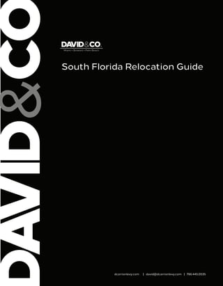This document provides information about relocating to South Florida. It discusses reasons to move to South Florida like the warm climate, lack of state income tax, and job opportunities. It also summarizes housing market trends in Broward, Miami, and Palm Beach counties, showing price increases. Specific neighborhoods are highlighted for each county, noting amenities like schools, beaches, and family activities that make them desirable places to live.