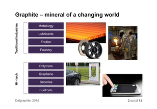 The document summarizes information about the Soyuznoye Graphite Project in Russia. It describes the project's large graphite resource of 116 million tons located in the Jewish Autonomous Region. Once operational, the mine is expected to initially produce 40,000 tons of flake graphite per year. The project has completed geological exploration, resource registration, and pilot plant testing. Construction is ongoing with production targeted to start in 2019.