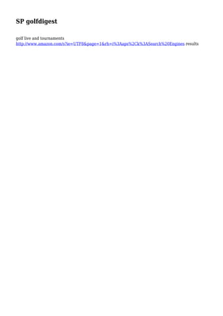 This document contains a few short phrases and a URL about golf and search engines. It mentions golf, tournaments, and live golf on golfdigest as well as providing a URL for Amazon search results.