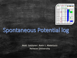 1. The document discusses spontaneous potential (SP) logging, which measures the electrical potential difference between a downhole electrode and a surface reference electrode. SP logs can be used both qualitatively to detect permeable beds and quantitatively to determine formation water resistivity and shale volume.