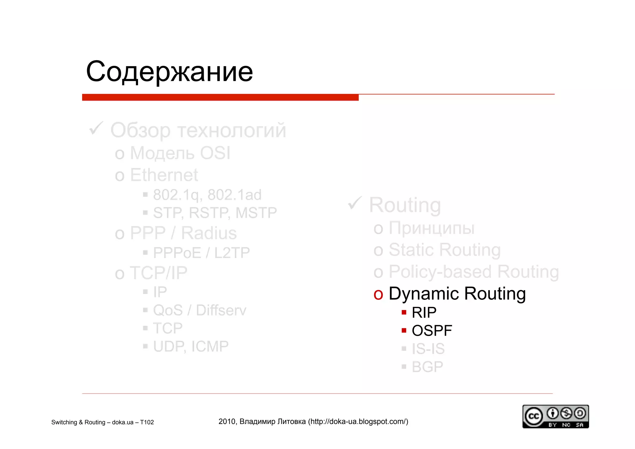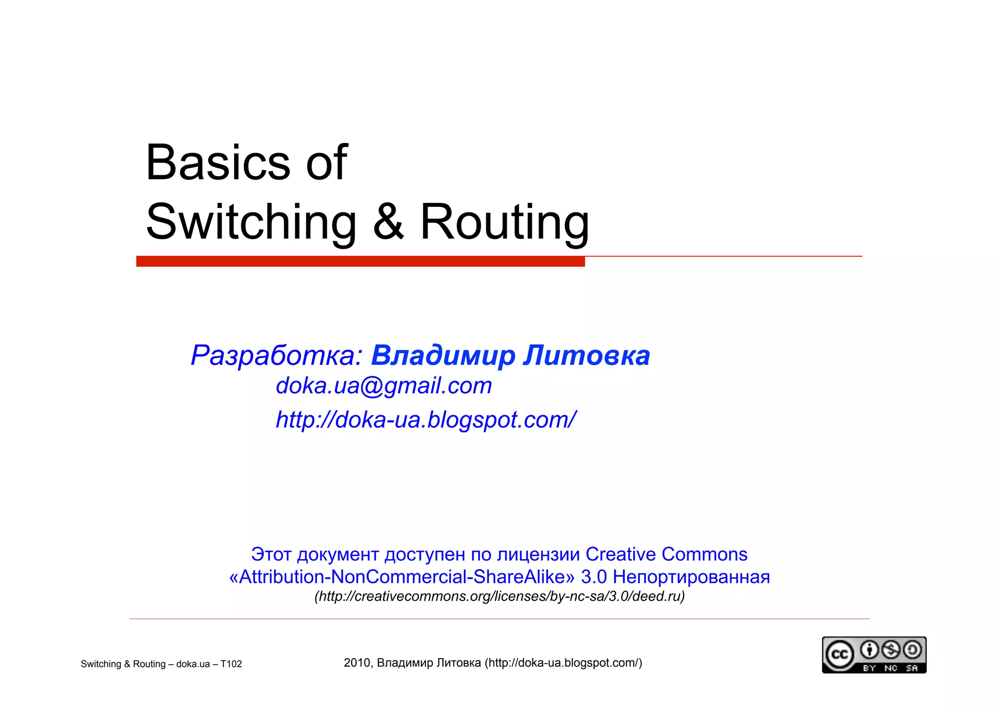 Документ охватывает основы технологий коммутации и маршрутизации, включая модели OSI, Ethernet и протоколы маршрутизации, такие как RIP и OSPF. Он подробно описывает принципы маршрутизации, таблицы маршрутов и различные протоколы, используемые для управления трафиком в сетях. Также рассматриваются основные параметры конфигурации и диагностики маршрутизации.