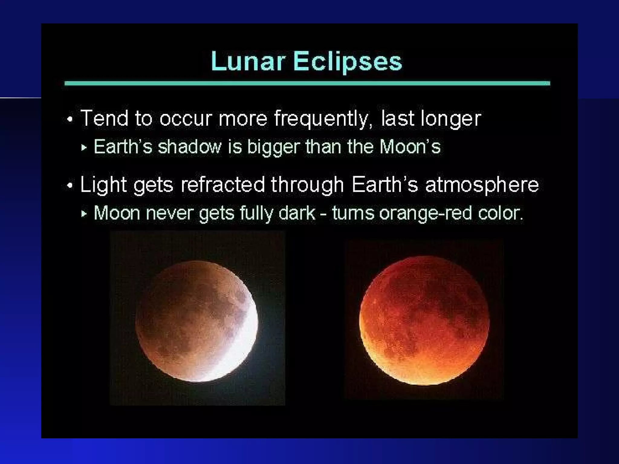 3) Lunar and solar eclipses occur when the Moon passes between the Earth and Sun, casting its shadow on either the Moon or Earth, and can be total or partial depending on the alignment of the three bodies.