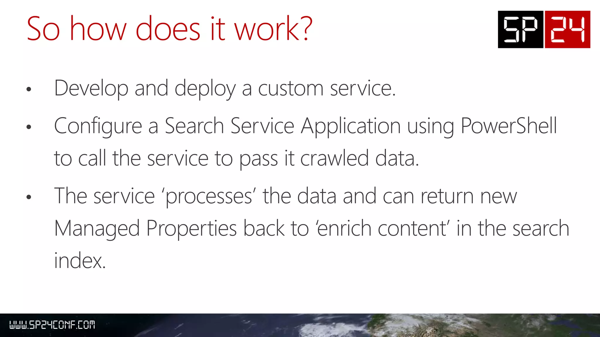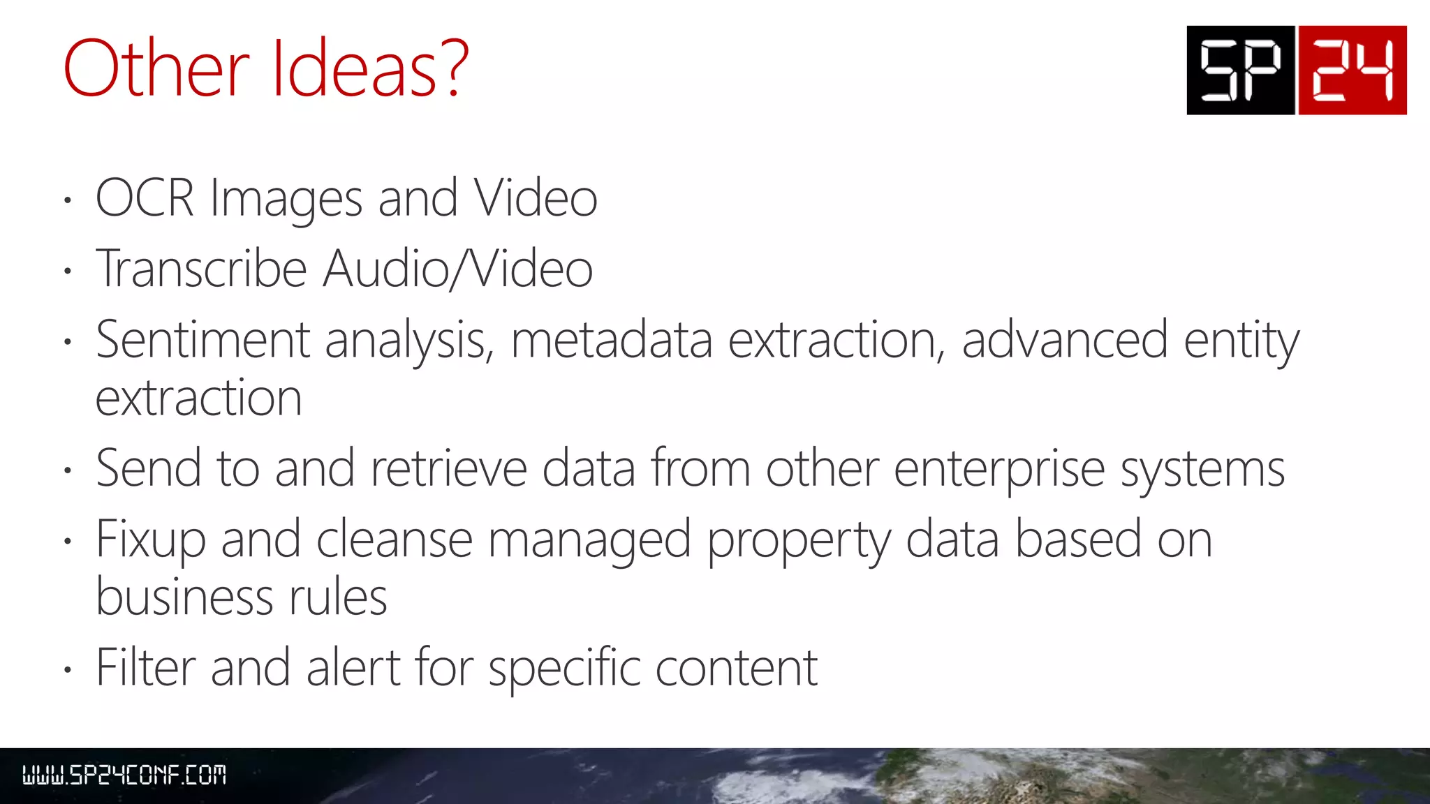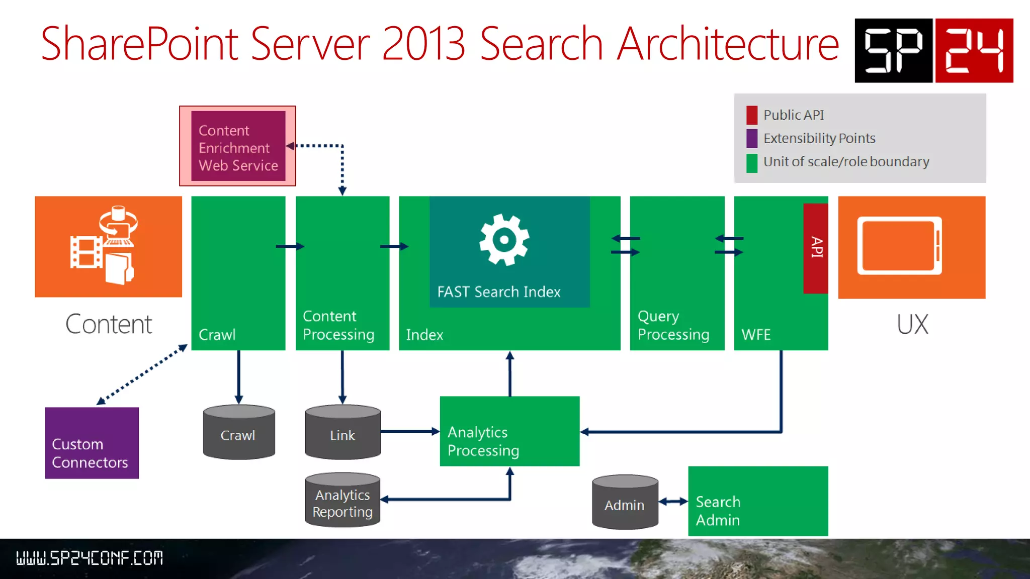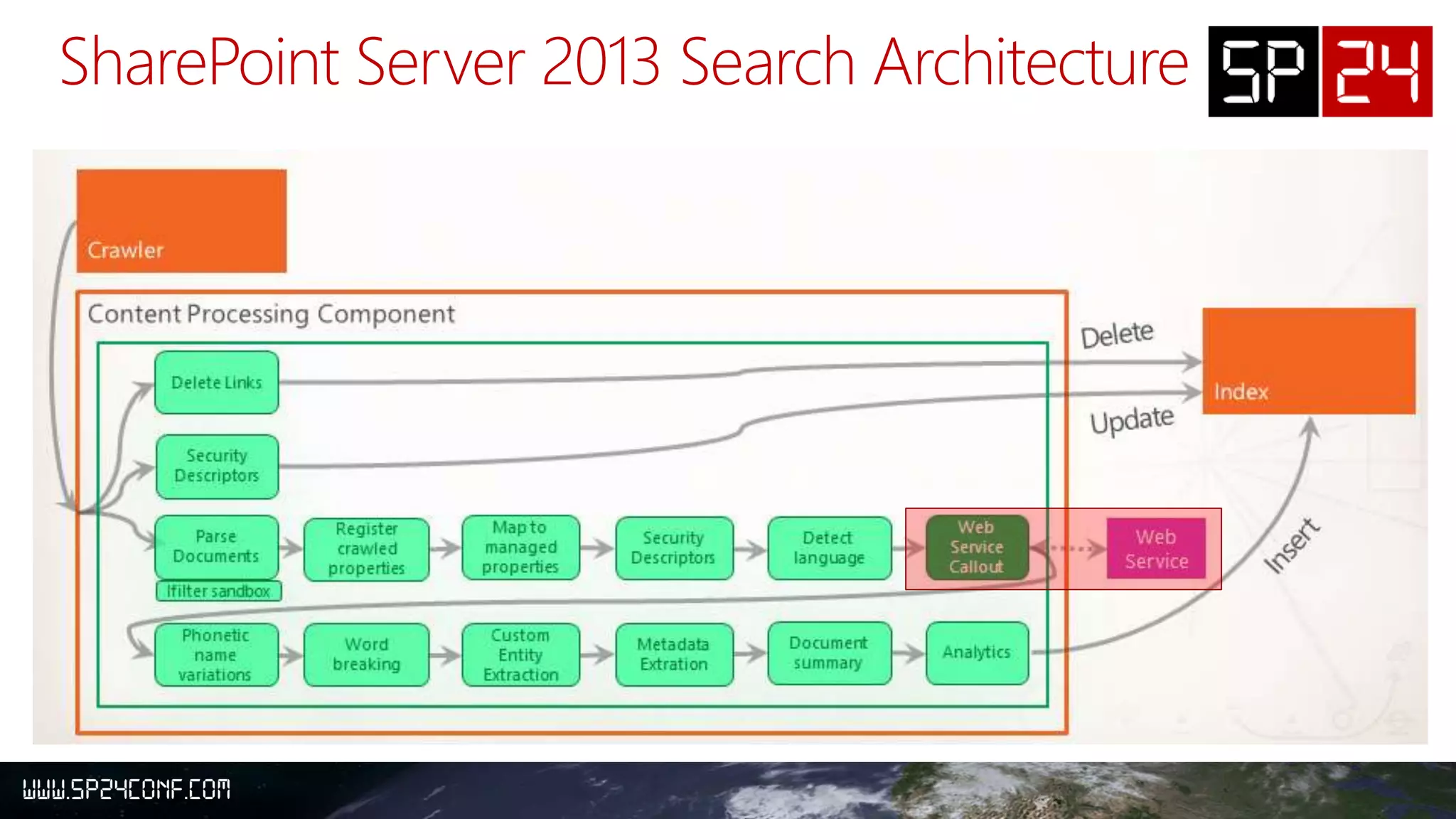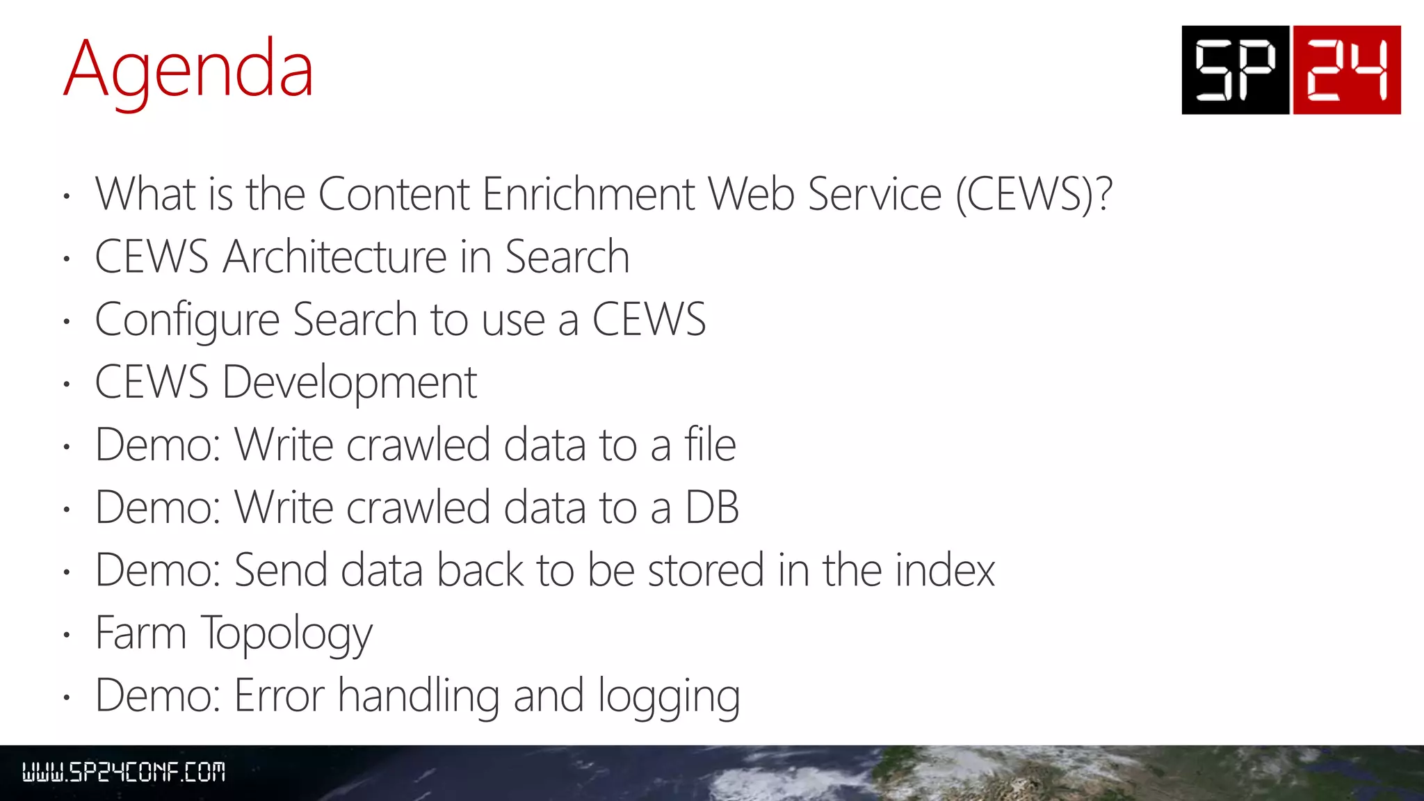 The document outlines an agenda for a SharePoint conference with various sessions on topics related to search in SharePoint 2013. It lists the session titles, presenters, and Twitter handles. The first session is on using the Content Enrichment Web Service with SharePoint Server 2013 Search, presented by Sezai Komur of NEC Australia.